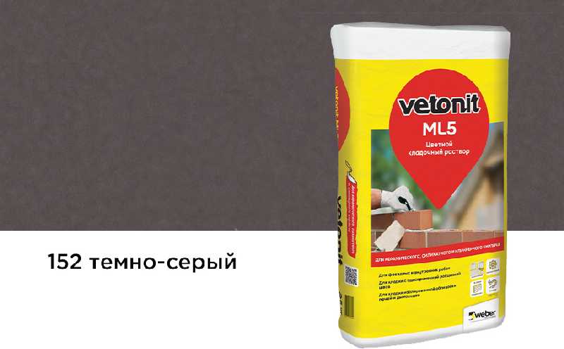 Цветной кладочный раствор weber.vetonit МЛ 5, темно-серый, №152, 25 кг
