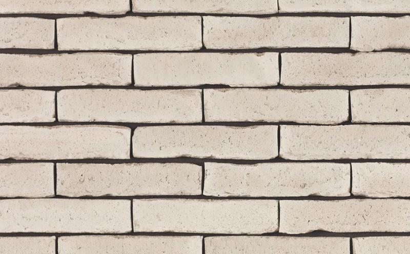 Terca Latero Basalto – керамический облицовочный кирпич ручной формовки размером 218х102х50 мм. Цвет бежево-белый, поверхность с легкими потертостями. Край кирпича рваный, не обработанный. Произведен в Бельгии.